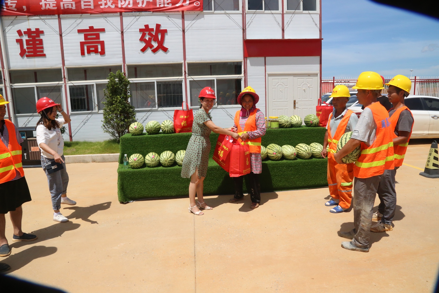 【概要描述】 時(shí)值高溫,公司工會(huì)關(guān)心一線生產(chǎn)員工。黨委委員、工會(huì)主席付蓉一行,于8月13日、14日連續(xù)兩天,帶著防暑降溫用品,走訪了滕王閣南擴(kuò)、繩金...